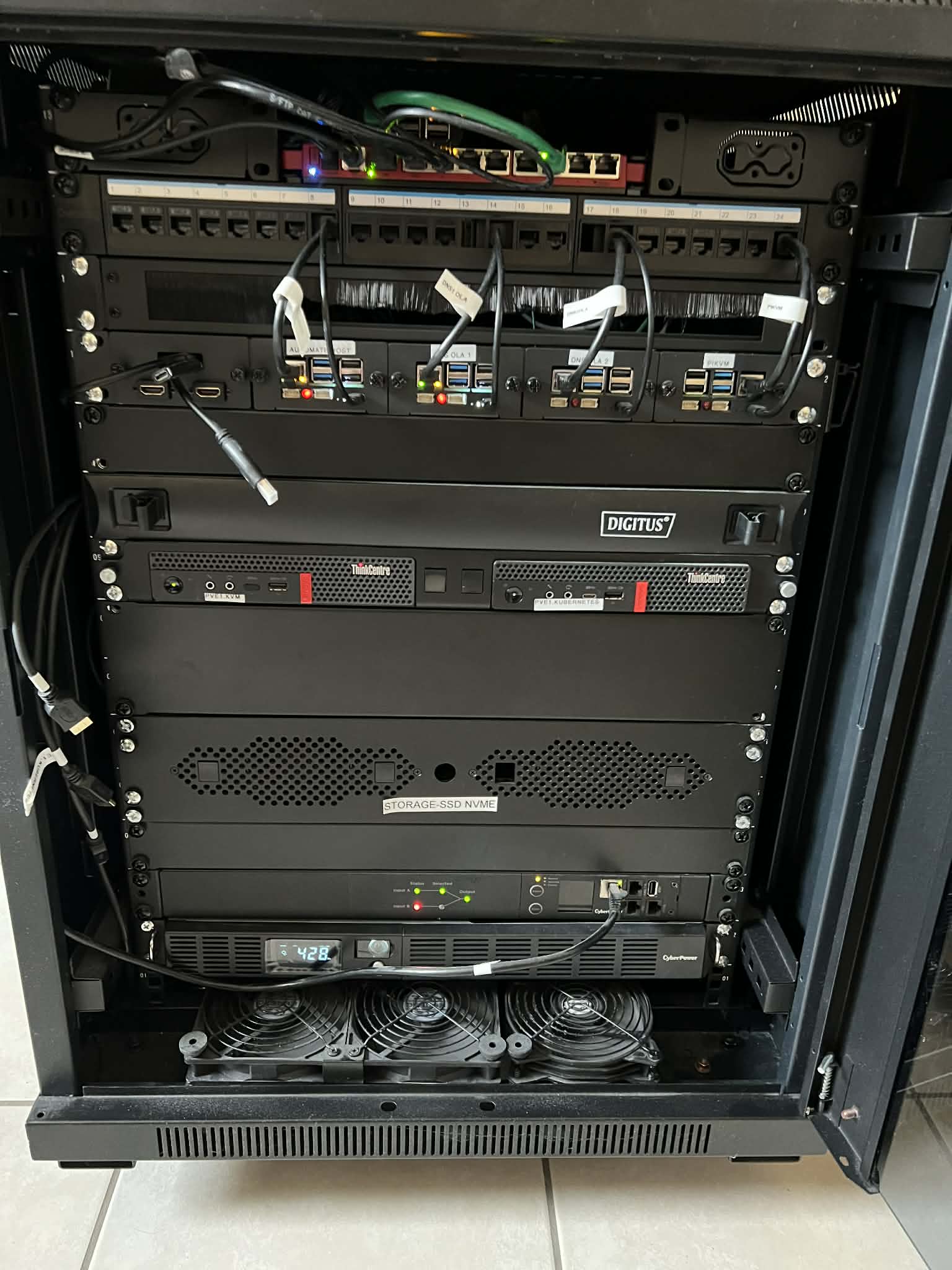 Both the network and the rack cabinet, along with its components, were assembled by me. While this kind of setup can be expensive, it is a worthwhile investment.