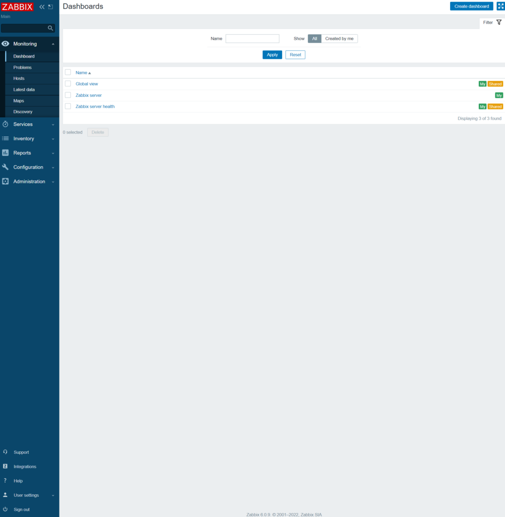 Zabbix Web Interface – Dashboard