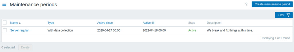n the Configuration → Maintenance section users can configure and maintain maintenance periods for hosts.