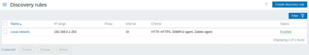 In the Configuration → Discovery section users can configure and maintain discovery rules.