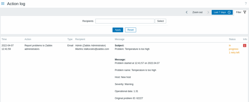 - The user has read-write access to host groups, hosts, templates, and triggers in action conditions